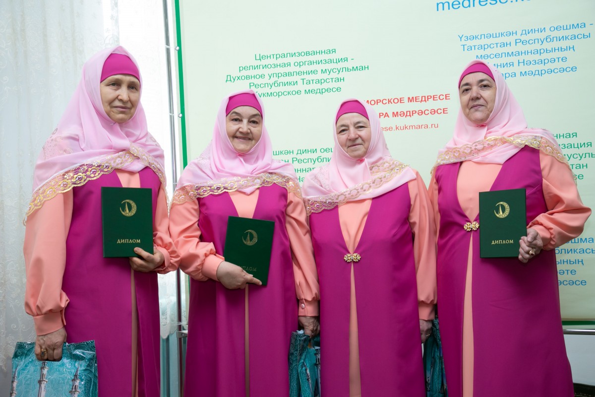 В Кукморском медресе прошло торжество, посвященное юбилейному двадцать пятому выпуску. В этом учебном году профессиональное отделение медресе закончили 14 человек: 10 мужчин и 4 женщины. Всем им были вручены дипломы о получении среднего мусульманского религиозного образования (решением итоговой аттестационной комиссии мужчинам была присвоена квалификация «имам-хатыйб», женщинам – «преподаватель основ ислама»).