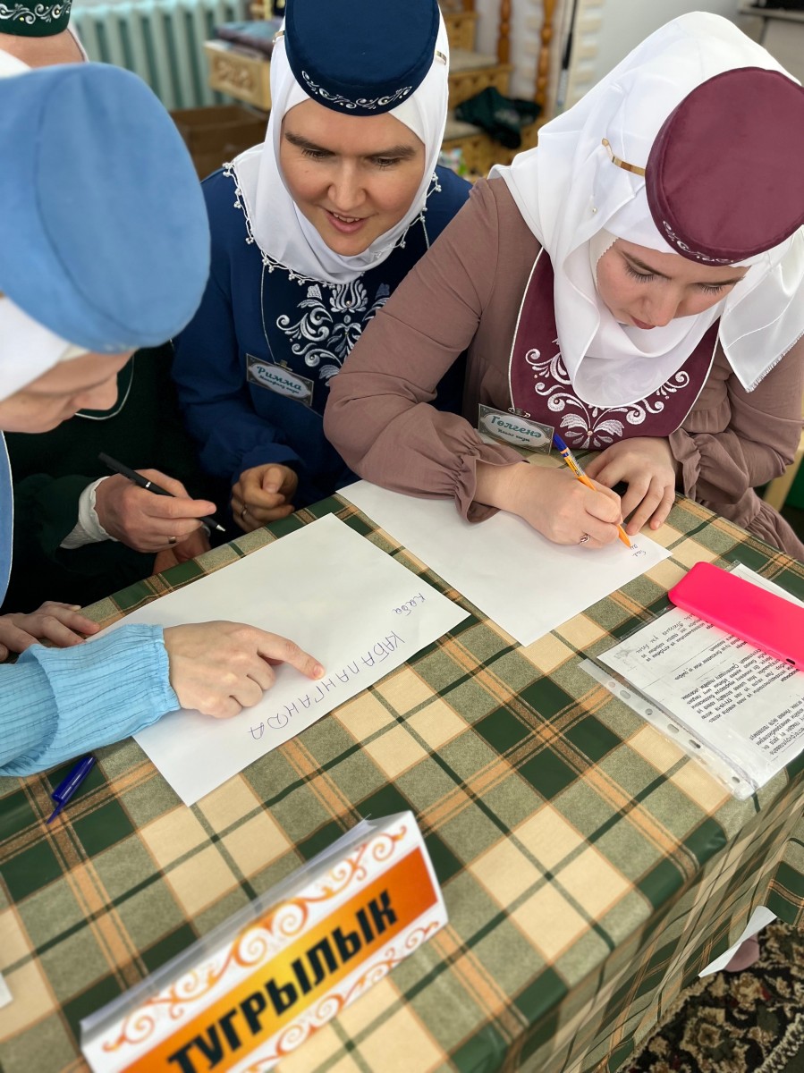 В Кукморском медресе состоялся ставший уже доброй традицией увлекательный конкурс-викторина под названием «Мөслимәләр бәйгесе» («Состязание воспитанниц»). В мероприятии приняли участие воспитанницы 3-го курса из разных групп. Четыре команды – «Тугрылык» («Верность»), «Сабырлык» («Терпение»), «Тырышлык» («Усердие») и «Татулык» («Согласие») – продемонстрировали свои знания и навыки в 7 турах, предусмотренных программой конкурса.