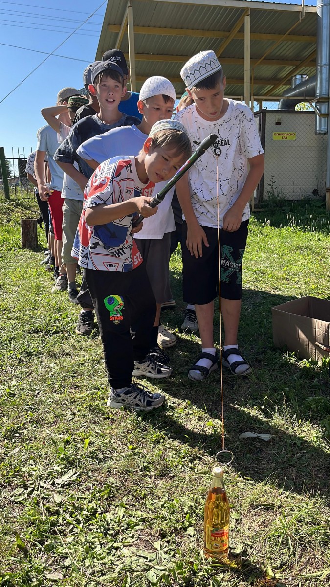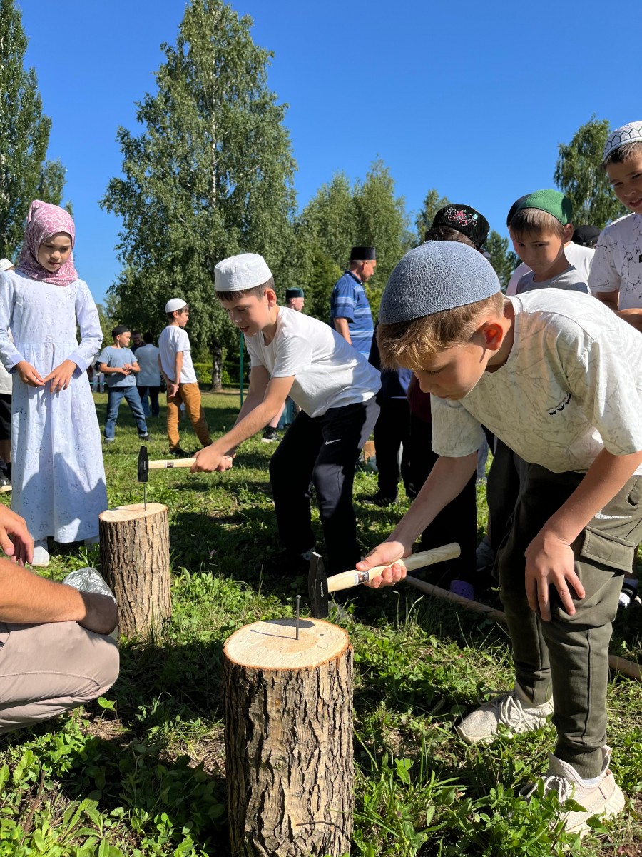 После выступления всех групп мероприятие продолжилось в виде различных игр и состязаний на лоне прекрасной природы. Дети с большим энтузиазмом и охотой участвовали в перетягивании каната, разбивании горшка (чүлмәк вату), забивание гвоздя на деревянный “чурбан” (бүкәнгә кадак кагу), беге в «лыжах» на троих, выталкивании друг друга из круга, набрасывании железного кольца на бутылку с лимонадом и других играх-конкурсах.