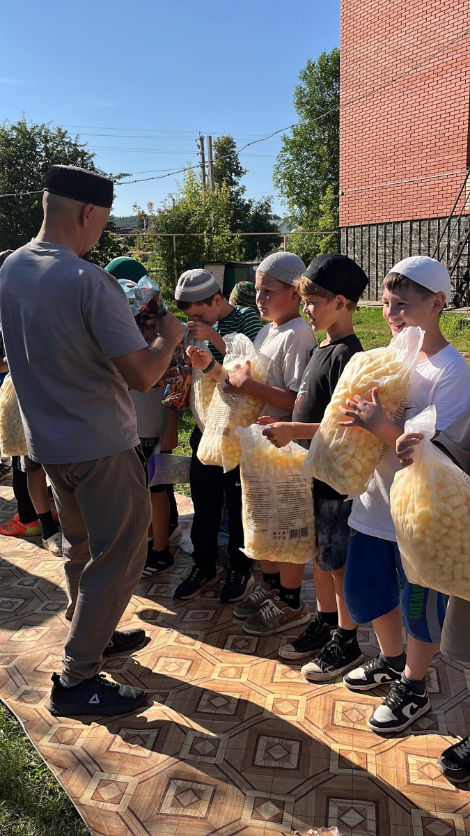 13 июля, в воскресенье, на церемонию закрытия лагеря собрались не только дети, но и многочисленные родители, бабушки и дедушки. Мероприятие, прошедшее на площадке рядом с медресе, было очень душевным и увлекательным. В начале собрания мальчики прочитали суры Корана и совершили молитву (дога). Затем каждая группа выступила перед зрителями: представилась и прочитала религиозные стихи.
